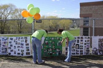 One year after Kaleigh's passing, many of the students came together on a cold and bitter day to share a few stories and memories of Kaleigh while gathered around the memorial stone that was purchased from the proceeds of the T-shirt sales. Today the memorial stone is part of a beautiful memorial garden.